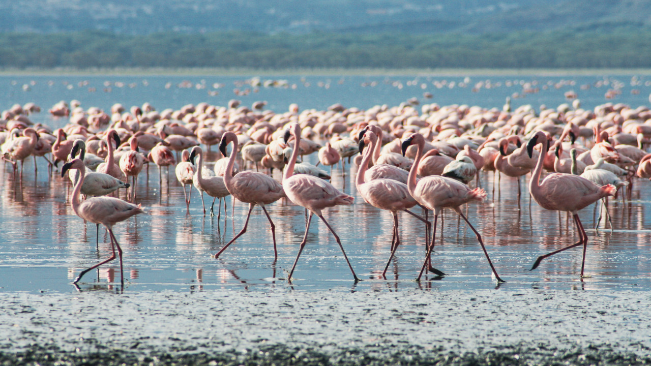 Wegen seiner bezaubernden Vielfalt an Vögeln gilt der See als Geheimtipp für Vogelliebhaber. Neben zahlreichen Flamingos und Pelikanen bevölkern auch Haubentaucher das fischlose Gewässer. Auch Raubkatzen, Büffel, Zebras, Gazellen und viele weitere Arten können Sie hier mit ein bisschen Glück beobachten.