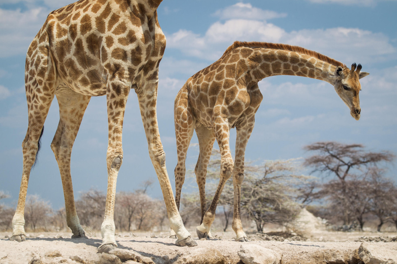 Etosha ist eines der tierreichsten Wildschutzgebiete des Kontinents – mehr als 110 Säugetierarten und über 300 Vogelarten sind hier zuhause. Zu den Stars gehören Elefanten, Giraffen, Zebras, Löwen, Leoparden und die bedrohten Spitz- und Breitmaulnashörner. Besonders berühmt ist der Park für seine gut erreichbaren Wasserstellen, an denen sich in der Trockenzeit ganze Herden versammeln – ideale Bedingungen für Tierbeobachtung und Fotografie. In der Regenzeit verwandelt sich die Salzpfanne in ein seichtes Gewässer, das zahlreiche Zugvögel, darunter Flamingos und Pelikane, anzieht. Die Landschaften Etoshas wechseln von trockener, fast surrealer Weite bis hin zu dichter Vegetation – und machen jede Safari einzigartig.