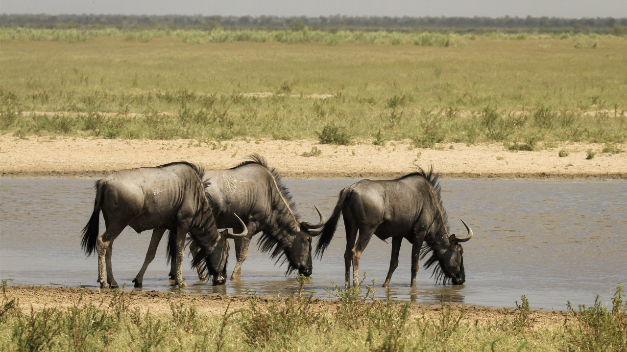 Die zahlreichen Wasserlöcher, teils natürlich, teils künstlich angelegt, sind die besten Orte für Tierbeobachtungen: Elefantenherden, Löwen, Giraffen, Zebras, Schakale, Hyänen und die seltenen Spitzmaulnashörner kommen regelmäßig zum Trinken. In den Abendstunden bieten beleuchtete Wasserstellen bei den Camps eine besonders stimmungsvolle Kulisse für Beobachtungen – ganz ohne Jeep.