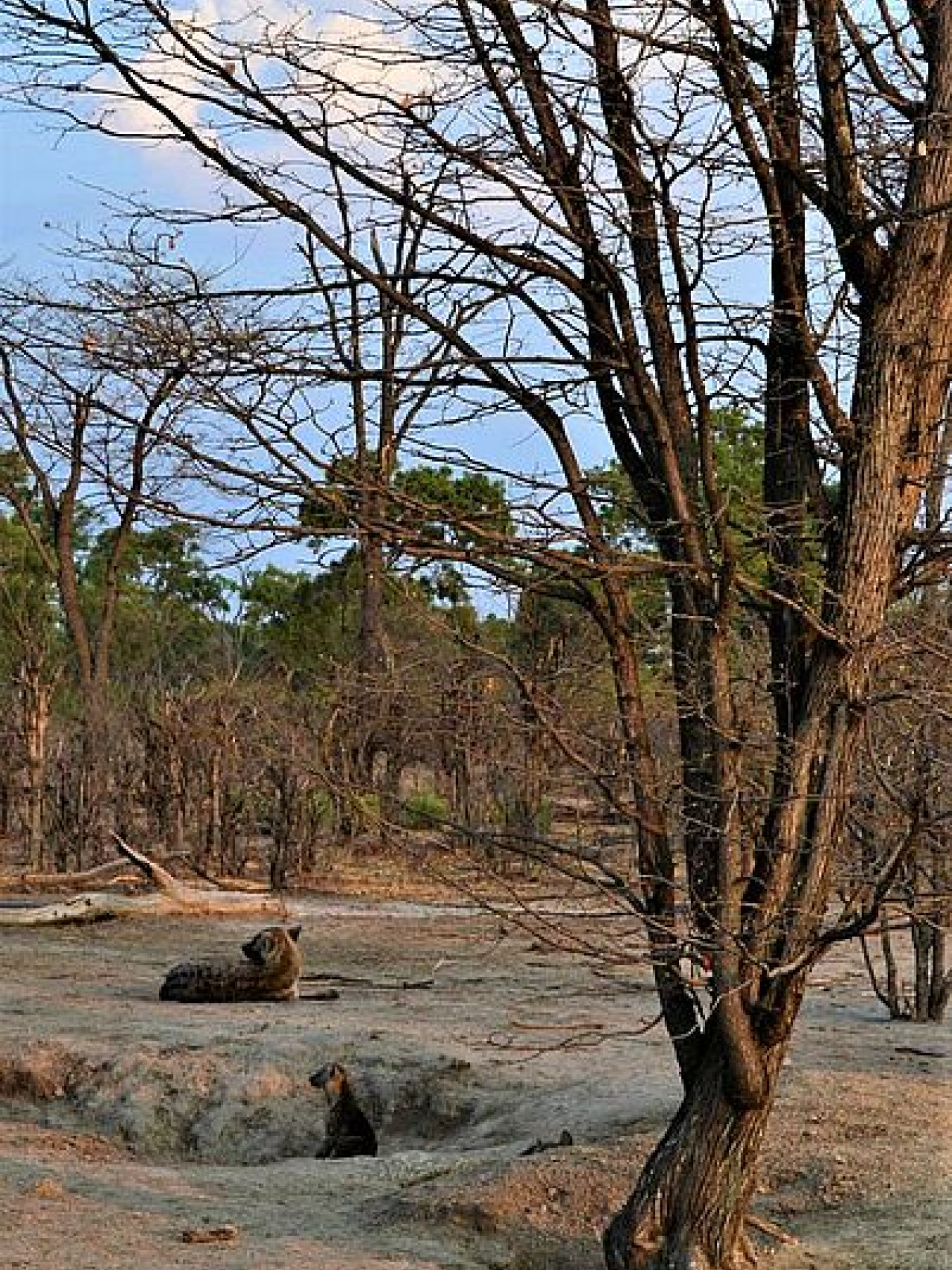 Der nächste Stopp ist das Moremi Game Reserve im Norden des Deltas. Schon auf dem Weg sehen wir eine Vielzahl an Tieren. Ich bin sehr glücklich, als wir im Camp ankommen und ein Honigdachs uns willkommen heißt. Einmal angekommen, geht es daran, dass Camp aufzubauen. Guide und Koch sind mir eine große Hilfe, da ich ohne sie wahrscheinlich unter freiem Himmel geschlafen hätte… zu viele Stangen, zu viele Planen, ich habe den Überblick verloren. Nach etwa einer halben Stunde steht das Camp jedoch und wir können es uns in unserem neuen Zuhause gemütlich machen. In Botswana sind die Campingplätze nicht eingezäunt, was heißt, auch Wildtiere können sich frei im Camp bewegen. Die Regeln sind einfach: hinterlasse keinen Dreck, lauf nicht zu weit raus und verlass das Zelt bei Nacht nicht. Die einzelnen Plätze sind jeweils 1 bis 2 Kilometer voneinander entfernt, sodass ich die nächsten Tage nicht viele Menschen sehe. Aber wer braucht schon Menschen, wenn der Abend mit dem Ruf der Hyänen beginnt!?
